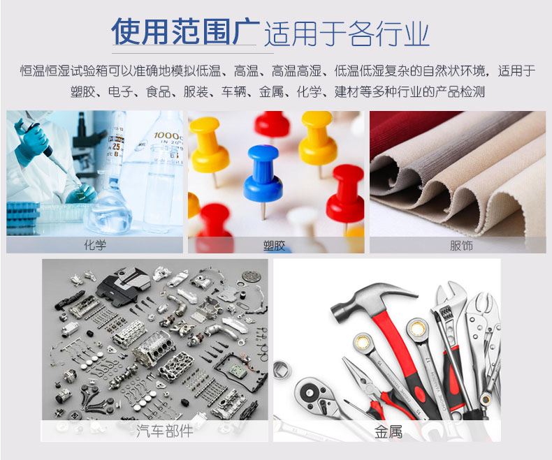 恒温恒湿试验箱用途概述 本产品具有冷、热恒温、恒湿控制的高精度设备。用于植物培养、育种试验;微生物培养、工业产品和原料的性能、寿命、包装等测试。